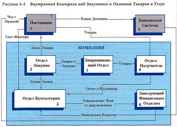 Более специфическим видом контроля в бухгалтерском учете является разделение обязанностей, включающих управление денежными средствами. Это разделение означает, что необнаруженная кража чрезвычайно маловероятна, за исключением случаев сговора двух или более работников. Легче осуществить разделение обязанностей в крупных, а не в маленьких предприятиях, так как в небольших предприятиях один человек может выполнять несколько обязанностей. Эффективность внутреннего контроля над денежными средствами различается в зависимости от размера и типа компании. Однако большинство предприятий должны следовать следующим процедурам: